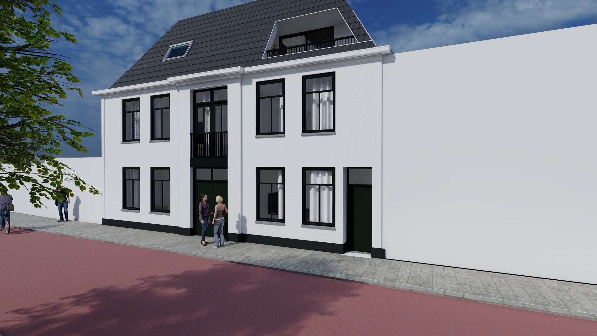 Het huidige kantoorpand op de Voorstad in Goes, wordt gewijzigd in een bijzonder appartementen gebouw, met wit gestucte gevels. Start bouw verwacht tweede kwartaal 2021